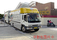 參加澳門回歸報導(dǎo)的現(xiàn)場電視轉(zhuǎn)播車