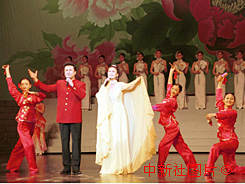 將于20晚舉行的澳門(mén)回歸慶典文藝晚會(huì)陣容鼎盛,名歌手牟玄甫和曲比阿烏在排演牡丹之歌。 中新社傳真 陳佳攝