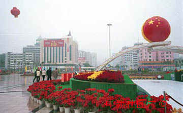 珠海通往澳門的大道裝點(diǎn)鮮花彩景,歡慶澳門回歸和解放軍進(jìn)駐。 中新社傳真 彭振戈攝