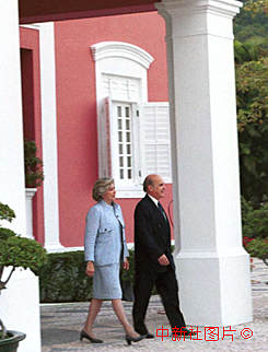 澳督韋奇立將軍和夫人十九日下午四時三十五分離開居住了八年零八個月的竹仔室官邸,在澳門政權(quán)交接儀式之后于二十日子夜將飛離澳門。中新社傳真 朱大強攝
