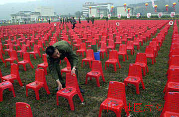 解放軍駐澳部隊戰(zhàn)士18日在珠海軍營擺放座椅,為明天的歡送會布置會場。中新社數碼傳真 王瑤攝