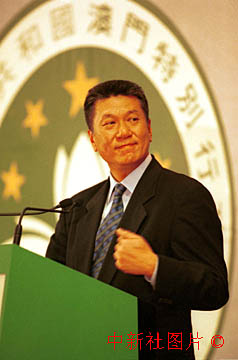 澳門特區(qū)行政長官何厚鏵二十日舉行履任后首次記者會,回答中外記者提問。中新社傳真 李剛攝