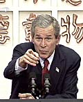 應(yīng)國家主席江澤民的邀請,美國總統(tǒng)布什于2月21日和22日對中國進(jìn)行工作訪問。21日中午,江澤民與布什舉行正式會談。會談結(jié)束后,中美兩國首腦共同會見記者。江澤民表示,他與布什總統(tǒng)的會談達(dá)成許多重要共識,取得了積極成果。江澤民說,雙方在會談中回顧了中美關(guān)系30年的歷程,深入討論了當(dāng)前國際形勢。一致認(rèn)為中美作為世界上有重要影響的兩個(gè)國家,應(yīng)加強(qiáng)對話與合作,妥善處理分歧,共同推動中美建設(shè)性合作關(guān)系進(jìn)一步向前發(fā)展。