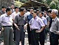由中國國家經(jīng)貿(mào)委主任李榮融率領(lǐng)的中央調(diào)查組,日前前往廣西壯族自治區(qū)南丹縣,調(diào)查當(dāng)?shù)氐V井重大透水事故。圖中左三戴墨鏡者為李榮融。