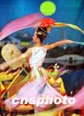 西安排練舞蹈迎接國(guó)慶節(jié)旅客