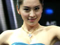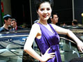 S型車模展露甜美微笑 黑色皮衣盡顯動(dòng)感 鈴木展臺(tái)韓范美女 甜美微笑春意盎然 紫衣甜美車模